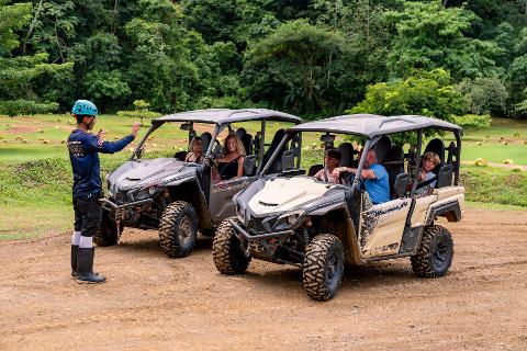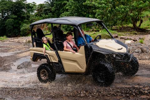 Welcome to the ultimate Jungle & River Buggy Adventure in Costa Rica for 3 participants. This tour puts you in the driver’s seat of a high-performance off-road vehicle. At our adventure center, you will receive complete driving instructions and take a short test run on our specially designed private track. From there, your bilingual guide will lead you along jungle trails, rivers, and fun muddy dirt paths. Time and trail conditions permitting, you can take a refreshing swim in our natural swimming pool. Throughout the adventure, your guides will provide cold water, and at the end, you will be greeted with fresh tropical fruits and water.